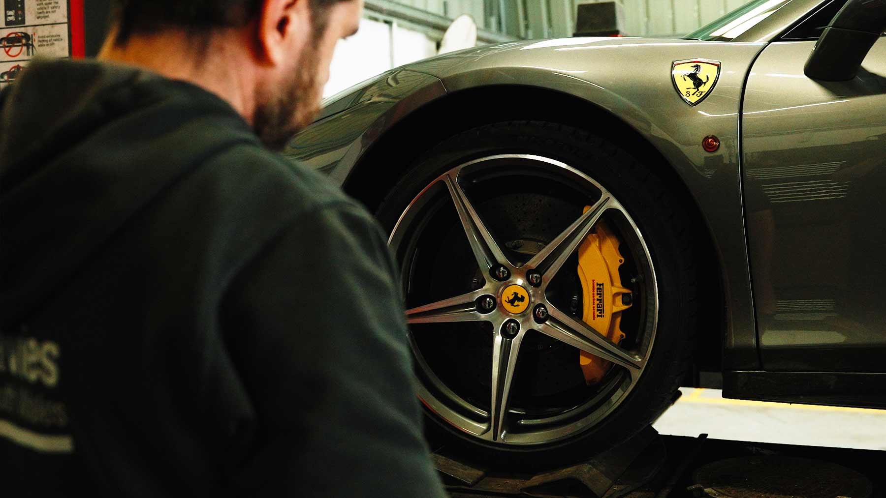 Inspection: A technician inspects the tyres and suspension components for any signs of damage or wear.